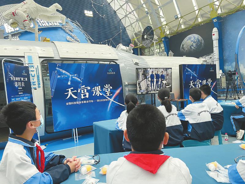 这次太空授课活动在中国科技馆设地面主课堂。作为“‘天宫课堂’全国科技馆体系联合行动分会场”的四川科技馆及攀枝花、遂宁、内江、巴中等地,学生们一边观看“天宫课堂”,一边跟着航天员做实验。