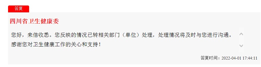 2022年04月12日 12:36:40 来源:群众呼声 - 四川省网络问政平台 编辑:刘亚宇