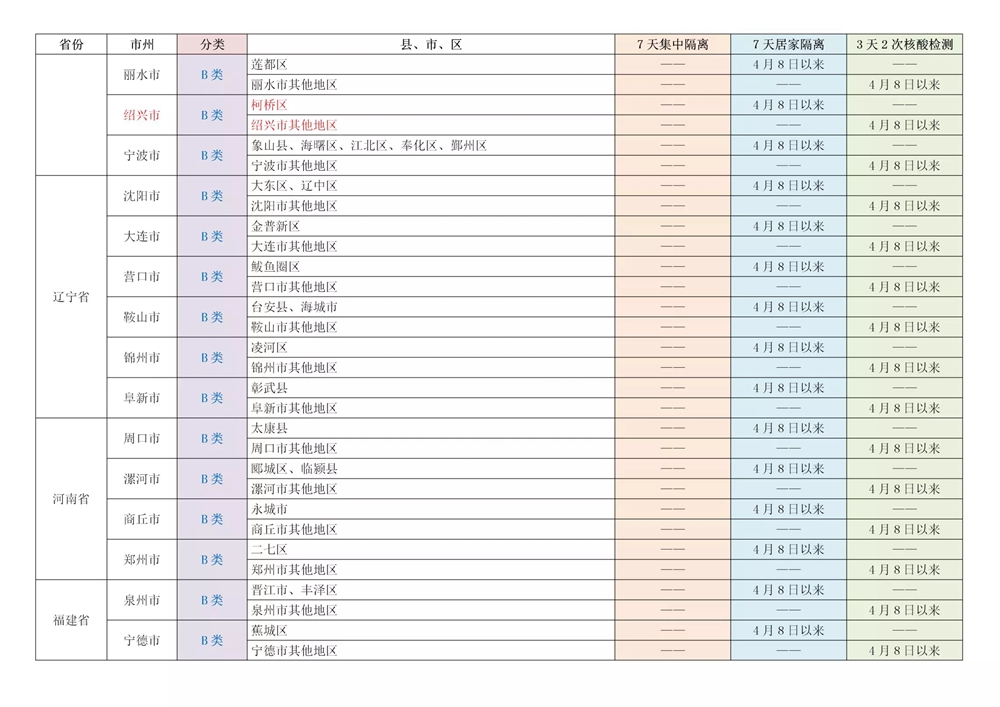 自4月15日起,四川省根据风险大小,将国内有本土疫情发生的地市(包括地级市、省会城市、直辖市)划分为A类地区(疫情输入四川省风险高的地市)、B类地区(除A类地区外,有本土疫情发生的省外其他地市),实行分类管控。