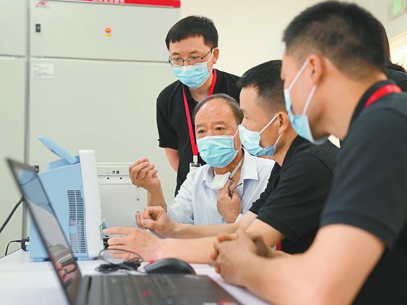 李群湛(左二)率团队在工作中。 记者 韦维 摄
