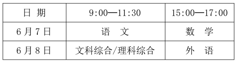 文史类考生考语文、数学(文)、外语、文科综合(含政治、历史、地理三个科目内容);理工类考生考语文、数学(理)、外语、理科综合(含物理、化学、生物三个科目内容)。