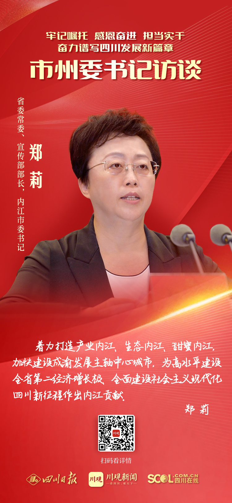 川观新闻记者专访了省委常委、宣传部部长,内江市委书记郑莉。