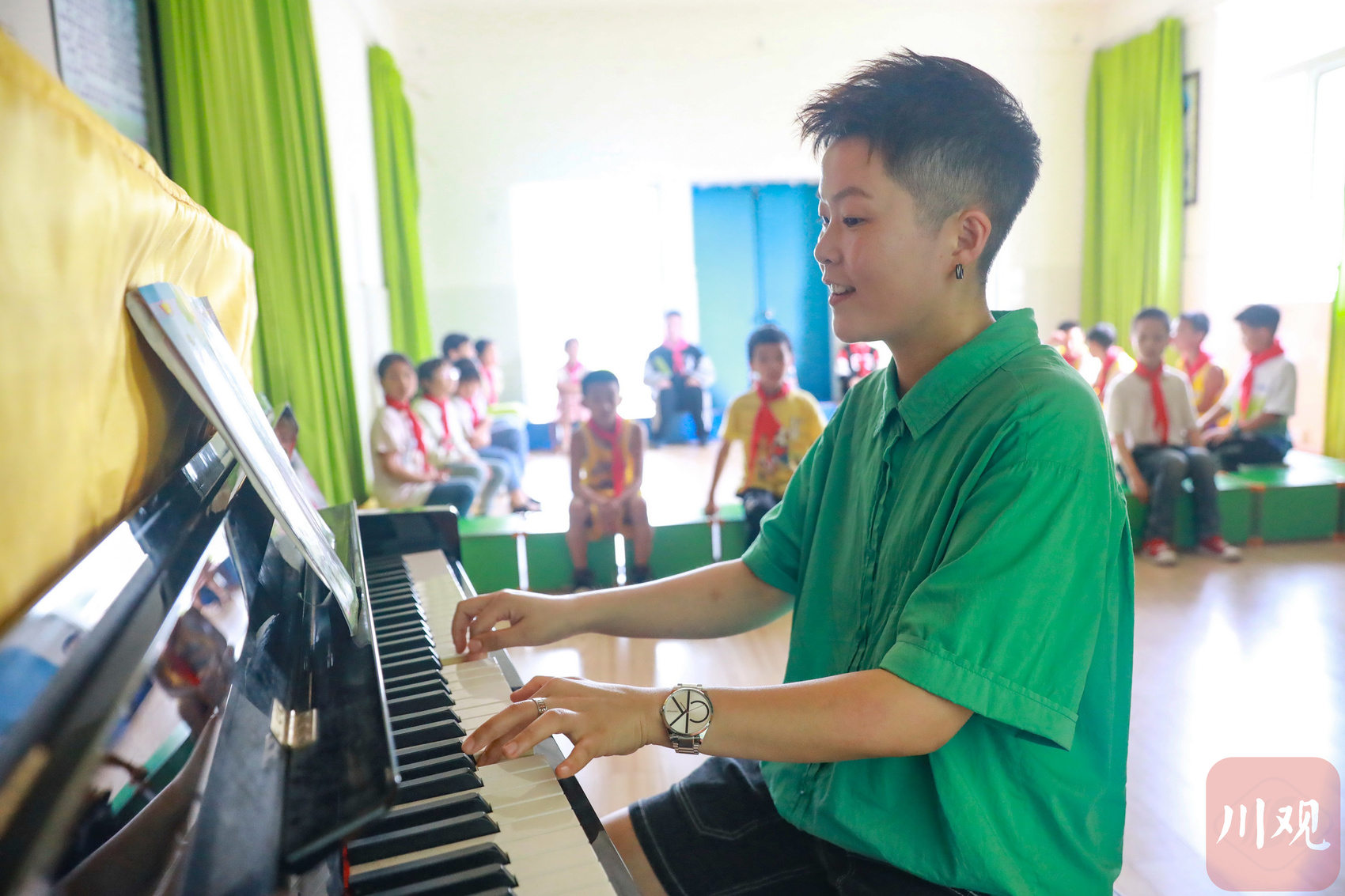 “感恩的心,感谢有你……”6月16日下午,芦山县龙门乡隆兴中心校四年级一班的同学们正在上音乐课。在音乐老师廖茂棱的钢琴伴奏声中,同学们整齐站立,一遍遍练习着“感恩手势操”。