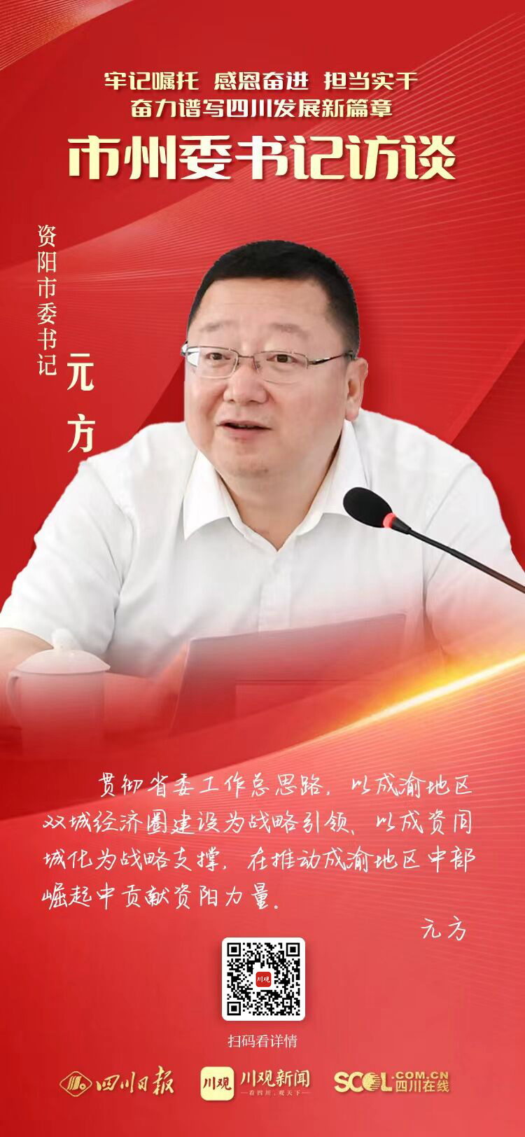 专访资阳市委书记元方:推动中央省委决策部署落地落实 在助推成渝地区中部崛起中展现资阳担当