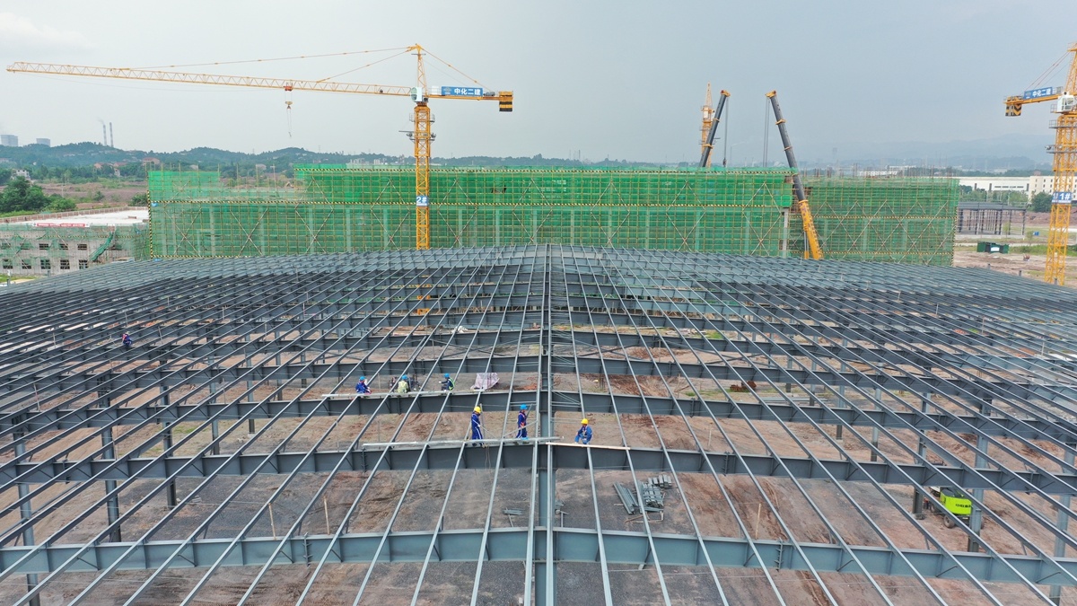 广安经开区吉兴化纤项目纺丝后纺车间正加紧建设。周琪均 摄