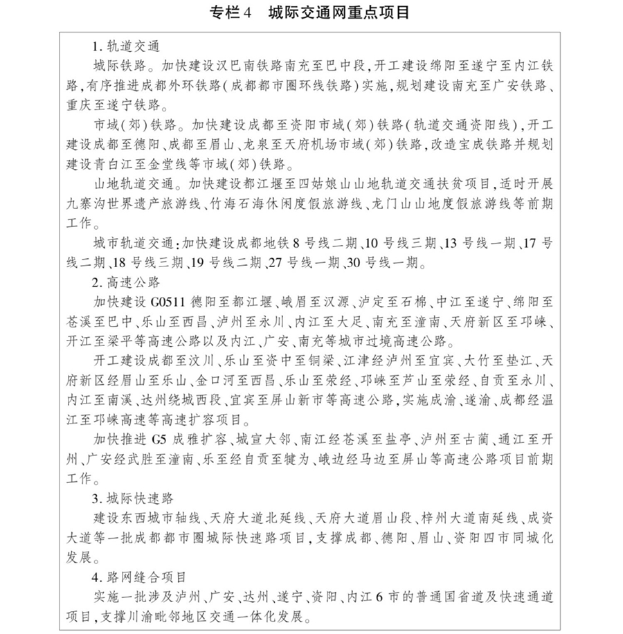 四川:到2025年 初步建成轨道上的双城经济圈