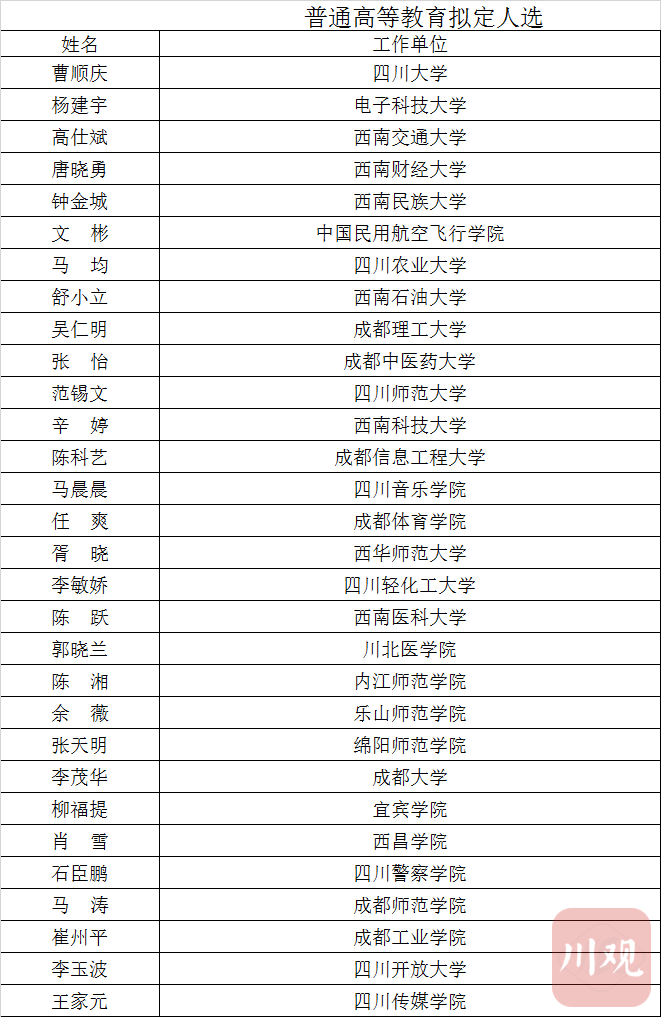 根据《中共四川省委教育工作委员会四川省教育厅关于开展首届四川省“四有”好老师遴选工作的通知》要求,经各市(州)教育主管部门、高等院校及省直有关部门遴选推荐,省委教育工委、教育厅组织评选,现将2022年首届四川省“四有”好老师拟定人选予以公示,公示时间至8月3日。若对公示人选有异议,请于公示期间以真实姓名向教师工作处反映。