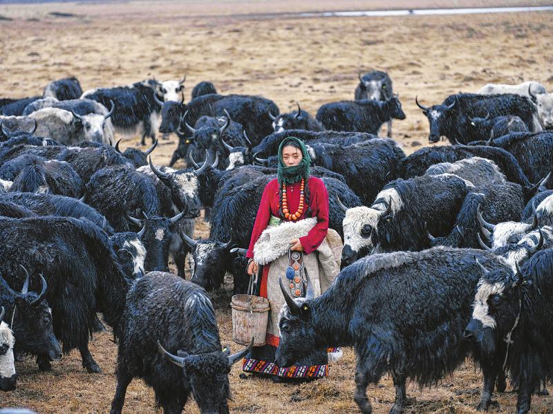 3月23日,25岁的贡波初在阿坝州阿坝县贾洛镇班玛拉塘村牧场放养牦牛。每年通过出售牦牛,她家收入在10万元以上。
