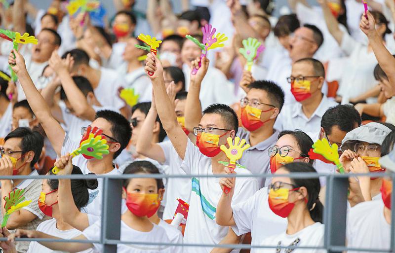 热情的观众为省运会参赛选手们加油助威。