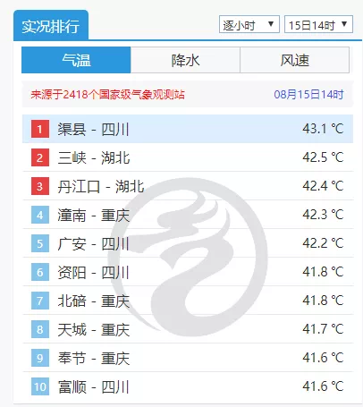 最近四川到底有好热?数据显示,8月15日14时,渠县以43.1℃直接冲上全国“高温榜”第一。而在这份全国“高温榜”前10名中,四川占据4席,可谓开启了“烧烤模式”。