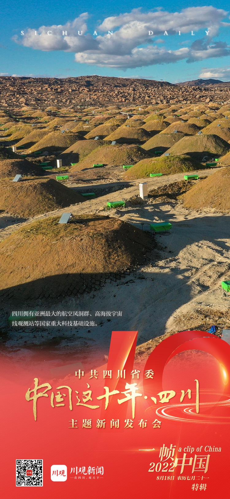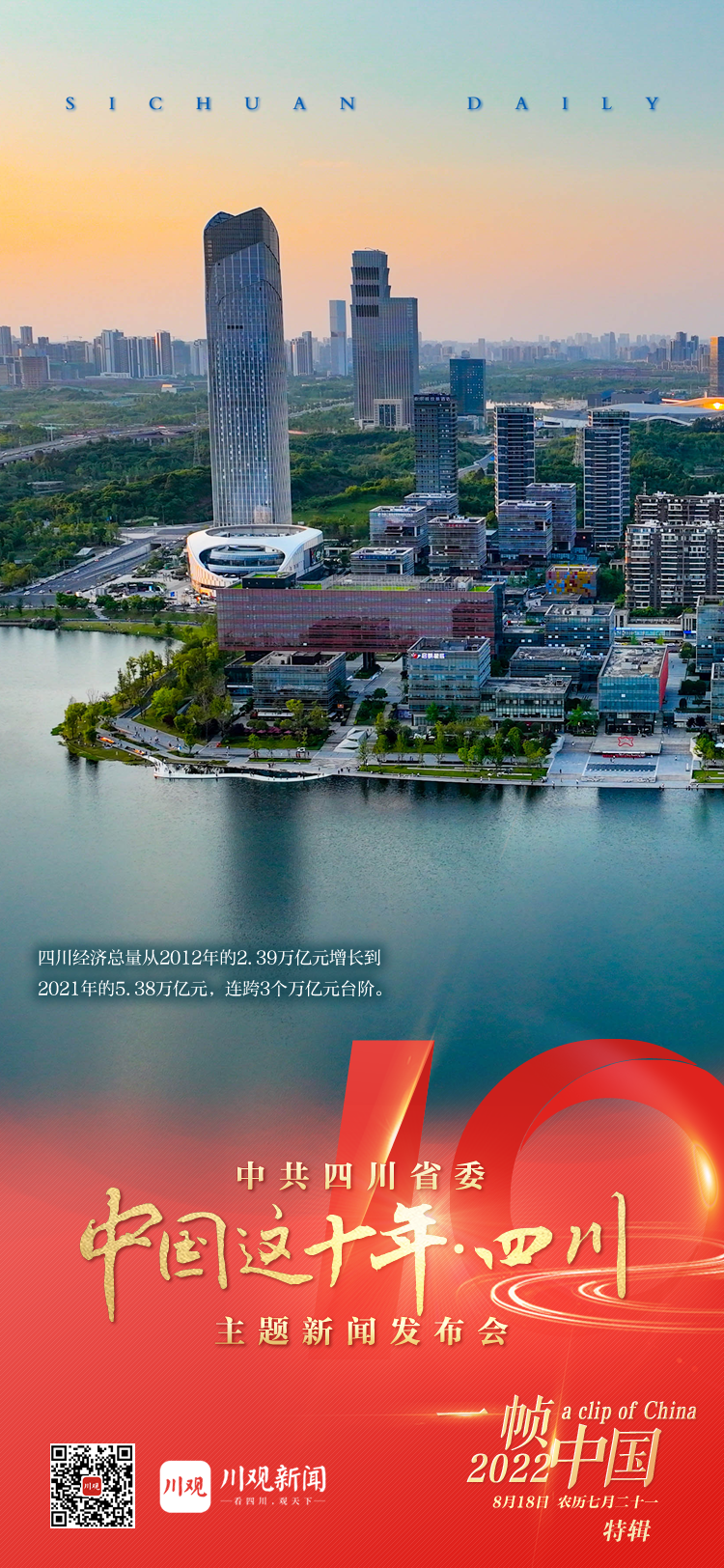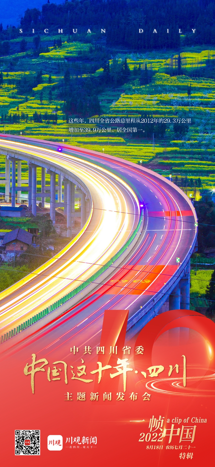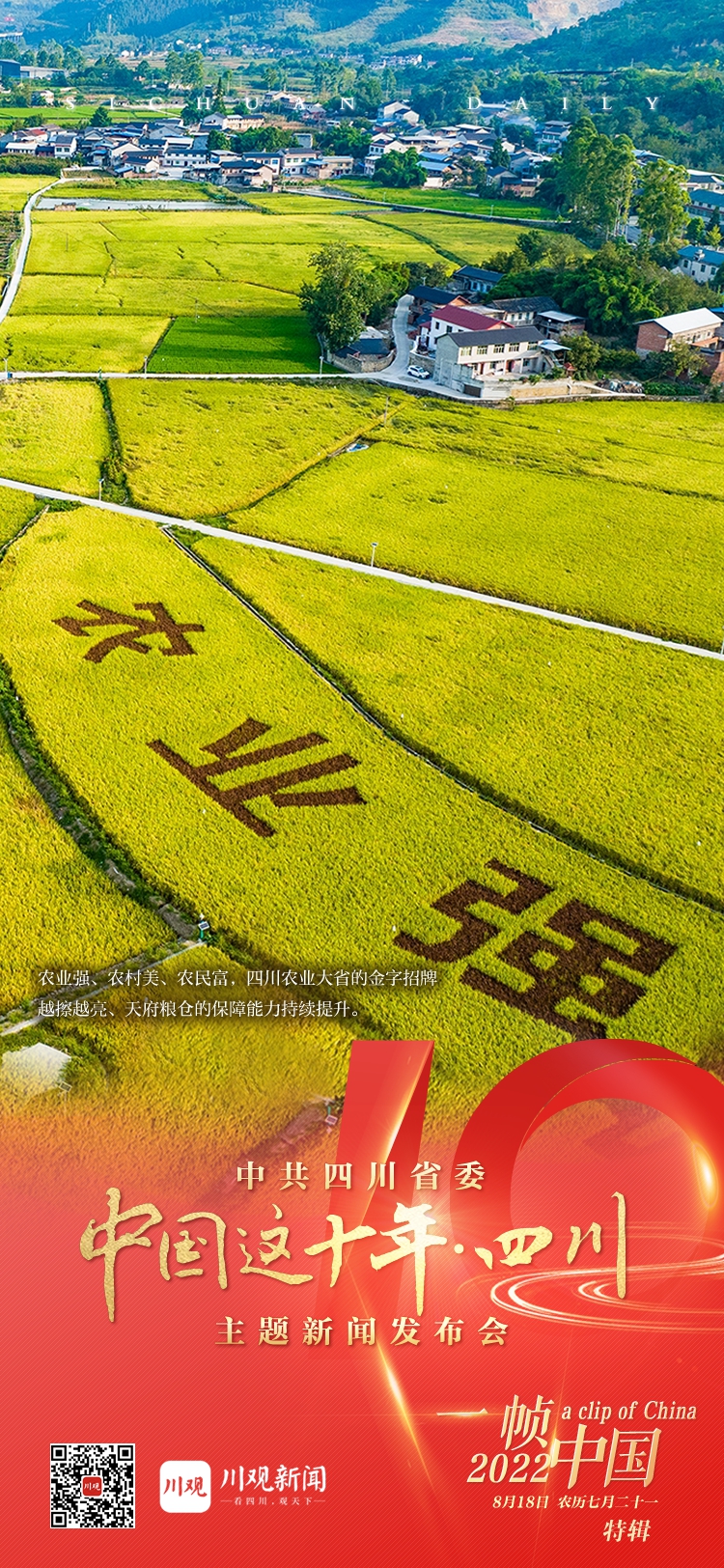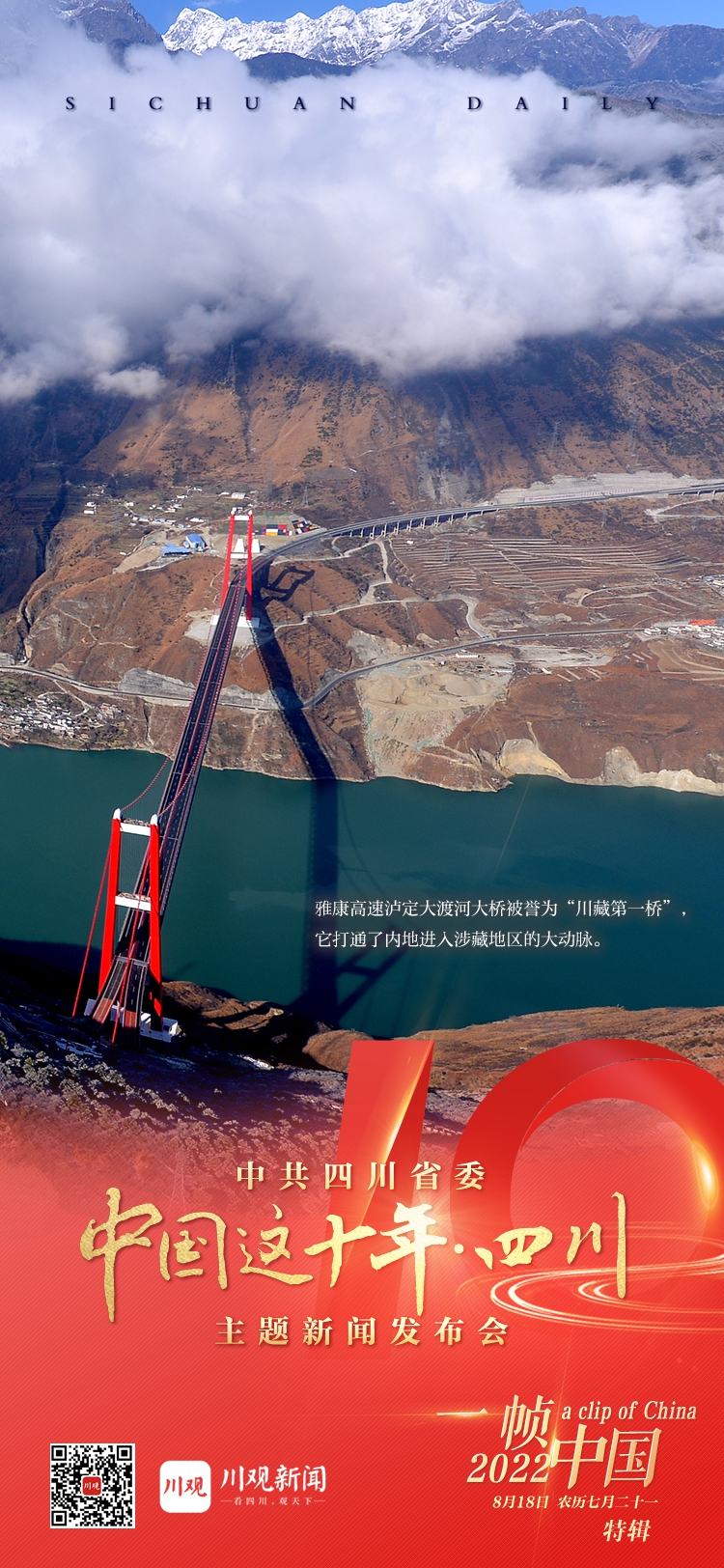 今天,川观新闻“一帧中国”栏目推出“四川十年”特辑,用发布会上提到的一幅幅壮美画卷、一个个精彩瞬间,带你领略四川这些年取得的巨大成就。扫描海报上的二维码,还可了解更多相关内容。