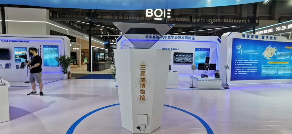 作为智博会史上首个主宾省,四川在本次智博会期间设立了主题展区,展现四川人民千百年来敢为人先的创新基因延续,突出近年来四川数字经济蓬勃发展的良好态势。其中,数字基建领域,展示运算性能全球前十的国家超算成都中心;智慧应急领域,展示引起50亿人次关注运用“天-空-地-地下”37种数据的多灾种监测预警系统;智慧教育领域,展示惠及民族地区、边远地区薄弱学校1400余所、学生32万余名、教师2万余名的“四川云教”远程教育教学模式;智慧医疗领域,展示华西5G重症监护系统,华西互联网医院月均诊疗量超过16万人次,展现了“5G+医疗健康”远程应用体系建设新成果;智慧文旅领域,利用全息成像技术,让观众沉浸式近距离感受三星堆青铜纵目面具的独特魅力。