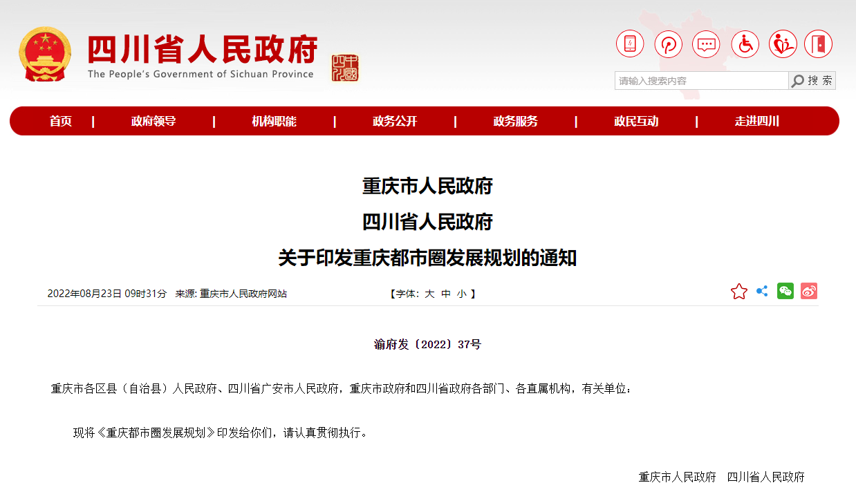 8月23日,川观新闻记者从四川省人民政府网站获悉,由重庆市人民政府、四川省人民政府联合印发的《重庆都市圈发展规划》(以下简称《规划》)日前正式公开发布。