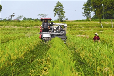 日前,德阳市罗江区略坪镇长玉村的两块田地进行水稻收割。