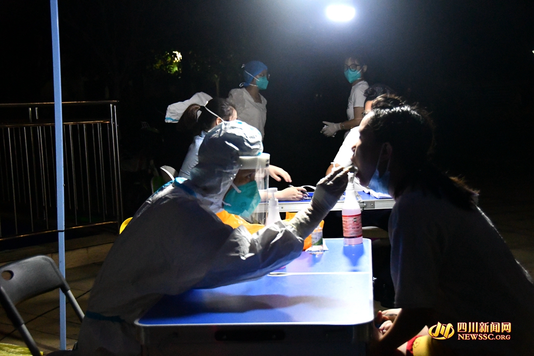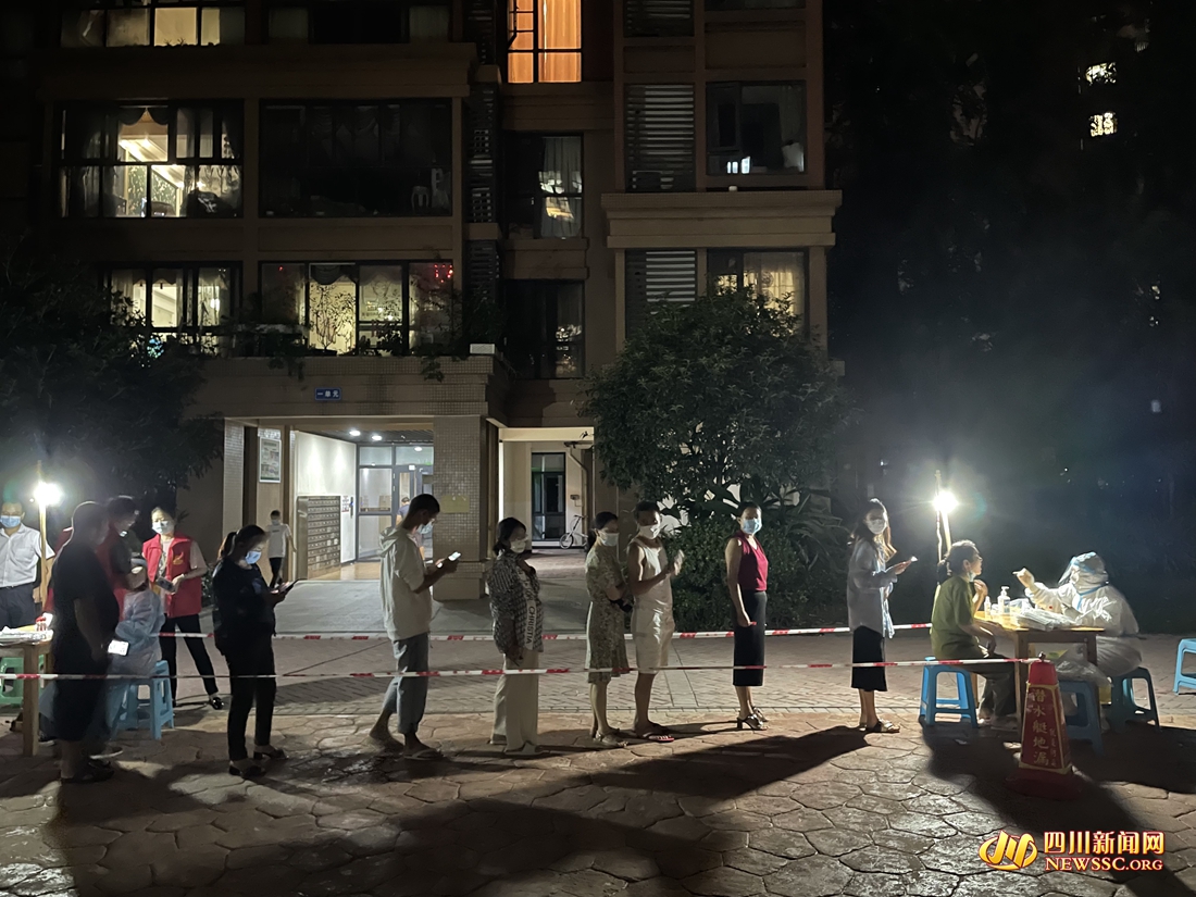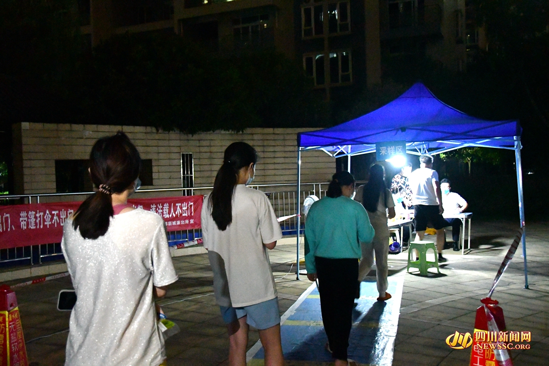 四川新闻网-首屏新闻成都9月2日讯(记者 胡旭阳 张宇 摄影报道)9月1日至9月4日,成都市全域开展全员核酸检测,9月1日18时起,全体居民原则居家,非本小区居民不得进入。当晚,成都开展了第一次全员核酸检测。