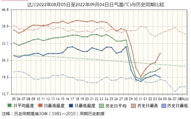 而在四川盆地的东部城市,这种气温的升降变化显得更加激烈。