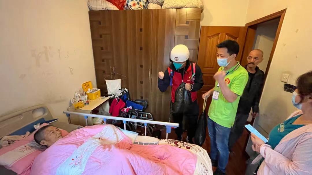 协助开展志愿者服务,为85岁瘫痪老人上门送蔬菜