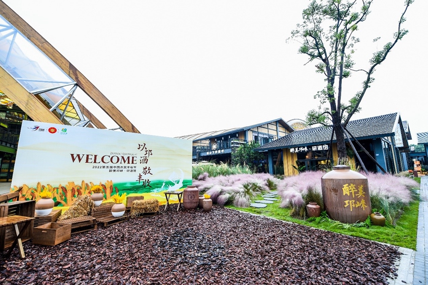 四川新闻网-首屏新闻成都9月23日讯(记者 乔永祯)9月23日上午,2022第五届中国农民丰收节全国主会场活动在中国天府农业博览园正式启幕,以“以邛酒 敬丰收”为主题的“醉美邛崃·研酒馆”在天府农博园开馆亮相。