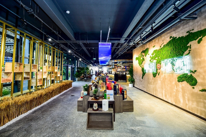 走到“醉美邛崃·研酒馆”门口,就闻到一股浓郁的酒香。据研酒馆相关负责人介绍,醉美邛崃·研酒馆以“从一粒种子到一杯邛酒”为设计理念,冰川水、崖谷地等自然元素重现邛崃独特的自然环境,并将邛崃温度、湿度、风速度、日照度、海拔度、土壤成分度、粮食品质度、水质度、酿酒工艺度等“黄金九度”美酒基因具像化,见证优质粮种在邛崃得天独厚的自然环境中,落地、发芽、生长、灌浆、成熟、收获,得以酝酿成一杯美酒的过程。
