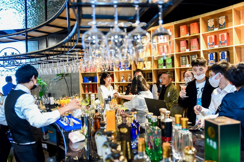 在酿酒原料展示区域,除了丰收的五谷,平时难得一见的酒曲和窖泥也被展示出来,引人驻足。在“崃山下的酒吧”,由20余家邛崃头部酒企带来的数百款精品白酒和新酒饮供消费者尝新体验,而由专业调酒师带来的邛酒特调鸡尾酒,更令人啧啧称赞,奔赴一场舌尖上的“醉美邛崃”之旅。
