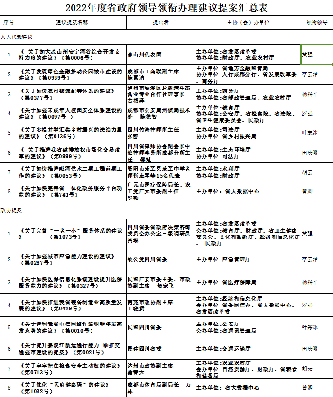 省长带头,今年四川省政府领导领衔办理建议提案16件
