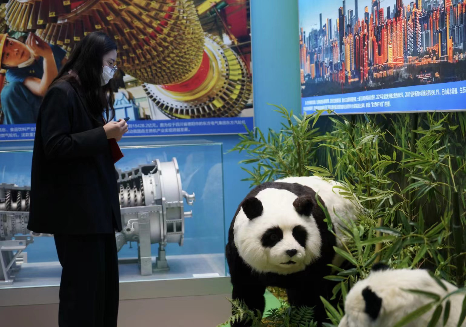 引发张女士“合影打卡”的大熊猫,仿照中国大熊猫保护研究中心雅安基地的两只大熊猫制作,栩栩如生。它们是四川展区6个模型、117幅图片、4部视频、1套沙盘、3件文物、2个场景以及52件(套)实物中的一部分。这些展品,立体呈现了新时代治蜀兴川的硕果。