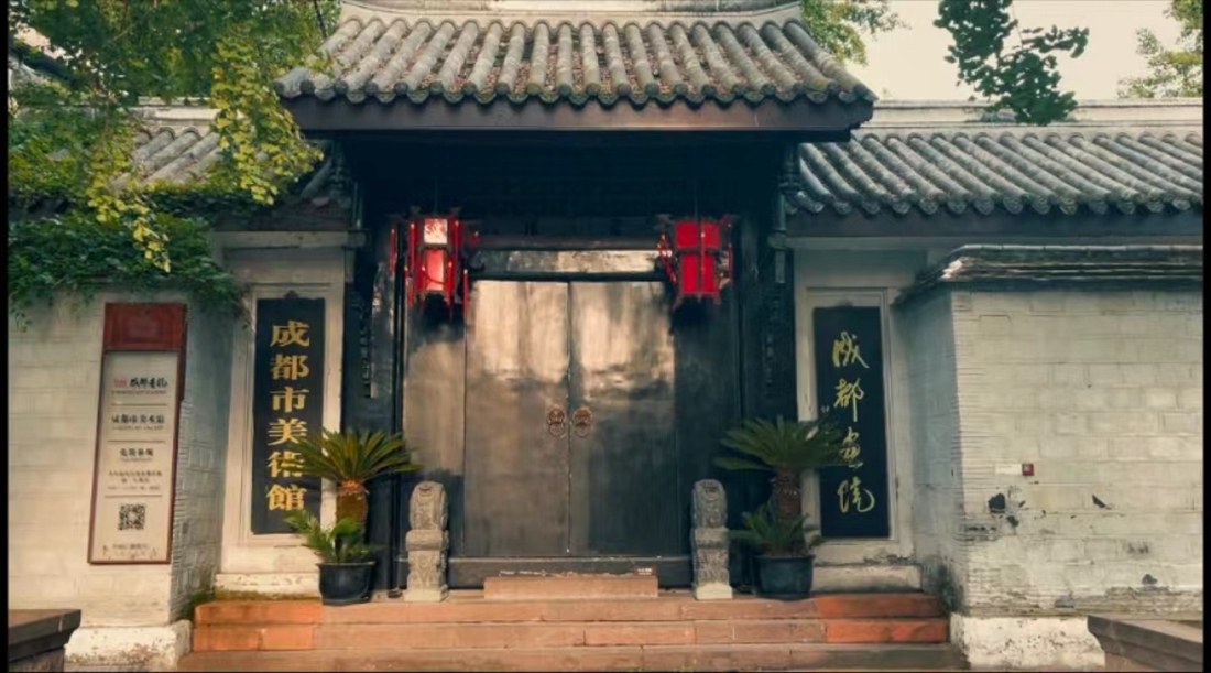 从支矶石的位置,向对侧望去,成都画院映入眼帘。传统的川西民风建筑,乌漆木的牌匾与木门,木刻雕花的中式构件,极具历史年代感。成都画院西侧门的石墙上,陈列着各种风俗国画,有博闻强志、刚正不阿的屈原,笔酣墨饱、层峦耸翠的山川,也有彰显古人智慧的二十四节气,让支矶石街多了一份书香气质。