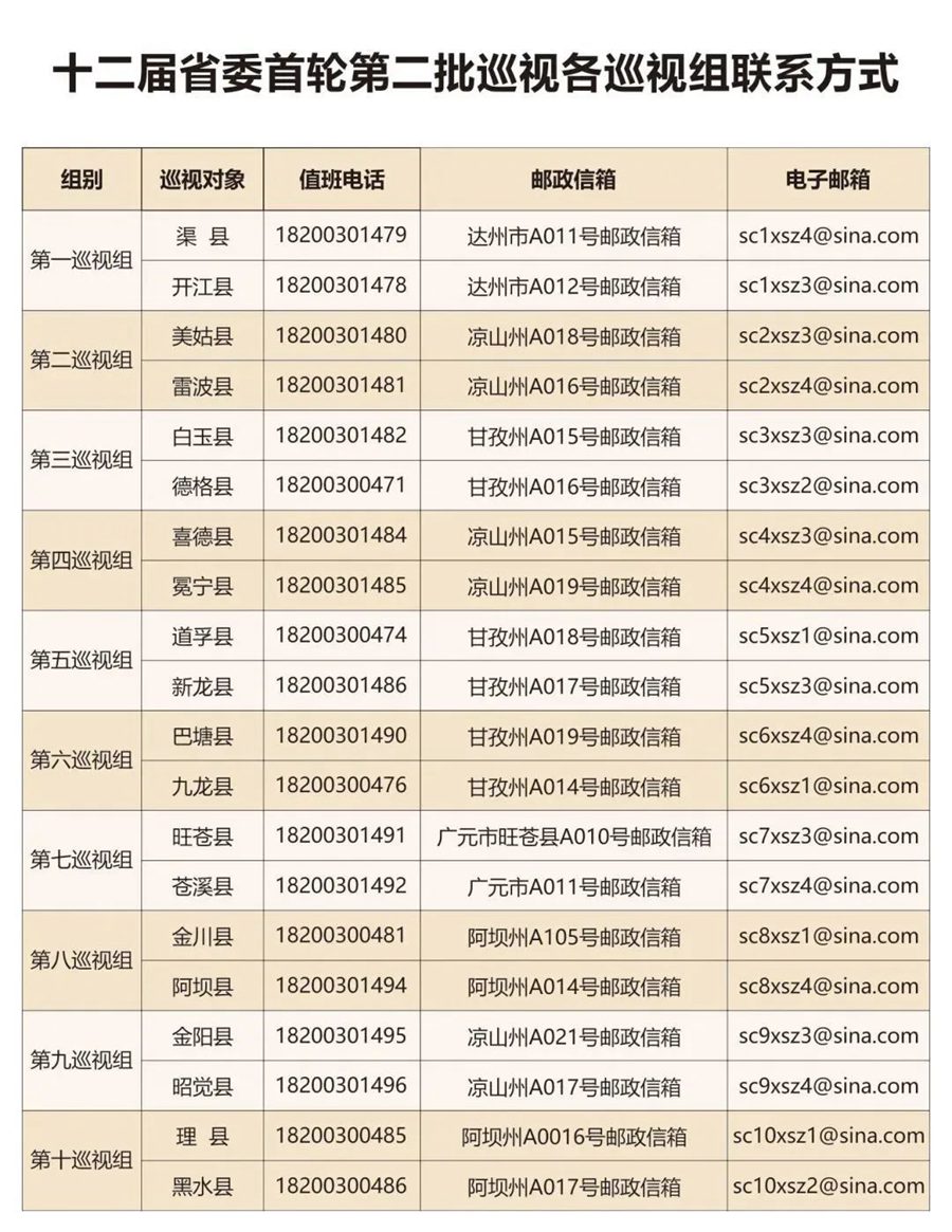 十二届省委首轮巡视全部完成进驻 第二批巡视各巡视组联系方式公布