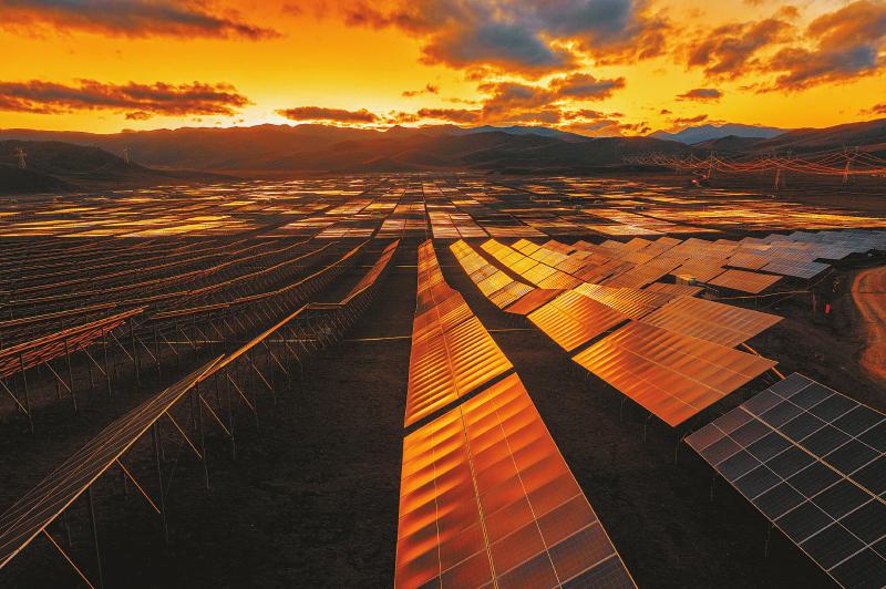 100多万块光伏板在这片海拔4000米的高原上依山势逐光而列,连绵起伏。