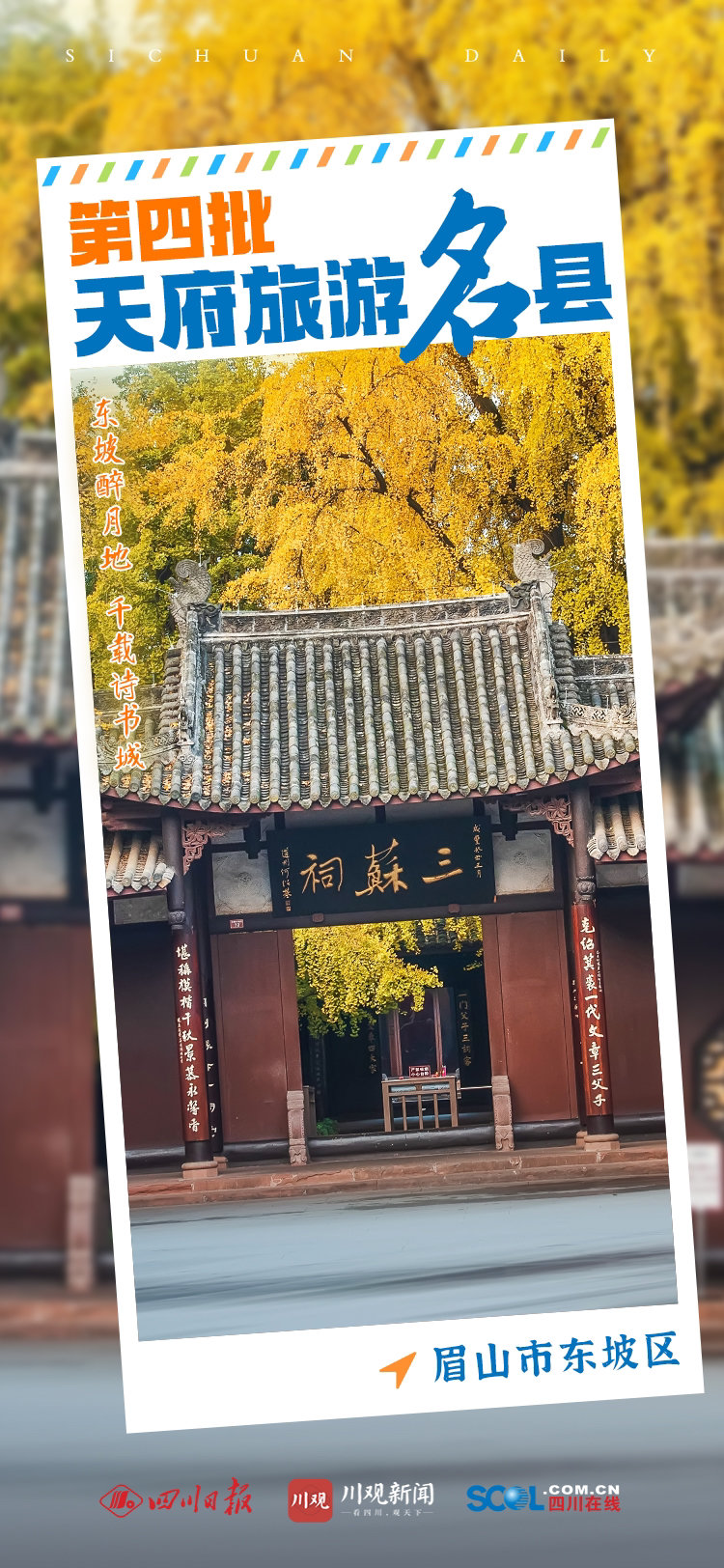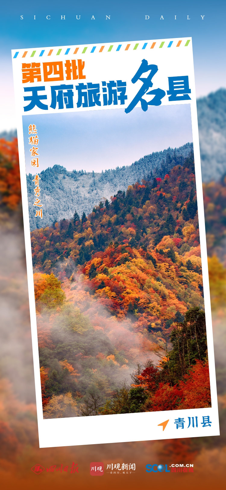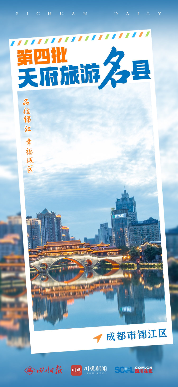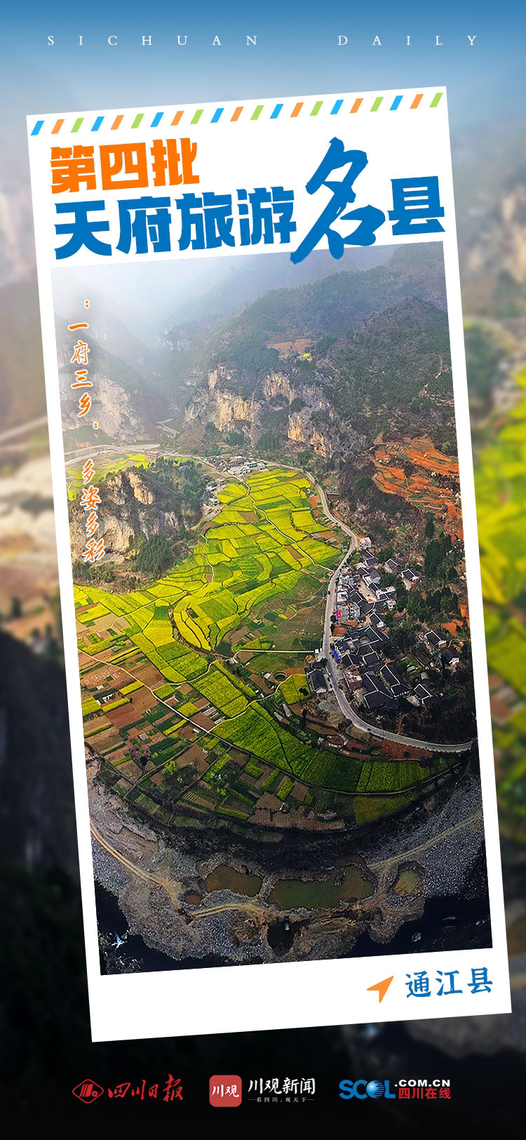 11月10日,2022四川省文化和旅游发展大会上,正式宣读第四批天府旅游名县命名县名单并授牌———成都市锦江区、绵竹市、泸州市纳溪区、通江县、青川县、宜宾市翠屏区、隆昌市、眉山市东坡区。