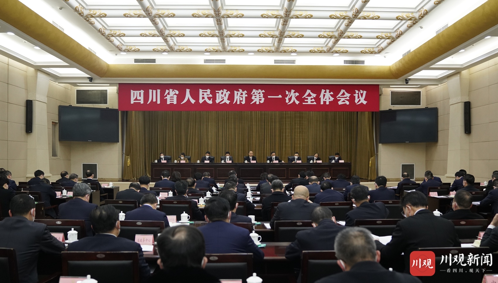 会议强调,一要坚决完成省人民代表大会确定的经济社会发展目标任务,答好新一届政府第一份年度考卷。坚决扛起经济大省挑大梁重任,尽最大努力争取更好结果,把去年受多重极端超预期因素影响落下的补回来,努力在经济大省中走在前列。成都市和经济体量相对较大的中心城市增速要高于全省水平,其他市(州)要各展所能、竞相发展,一起推动全省经济运行整体好转。二要毫不动摇地把推动高质量发展作为新一届政府的首要任务。在完整、准确、全面贯彻新发展理念上下狠功夫,保持战略定力,避免低水平重复建设和同质化竞争,决不能再走先污染后治理的老路,坚决不要浪费资源、破坏耕地的发展,对在安全底线、生态红线、耕地红线上出现重大问题的,在省政府评优争先中实行一票否决,确保执行党中央决策不偏向、不变通、不走样。三要把兑现优化营商环境郑重承诺作为新一届政府工作开局“重头戏”。“新官要理旧账”,政府带头讲诚信、恪守契约精神,不能当“老赖”。切实提升水电气等服务保障水平,大力营造市场化法治化国际化一流营商环境,年年有突破、五年见大成效。四要突出“严”“实”基调,切实加强政府自身建设。全面落实《政府工作报告》提出的9个“严”字要求,把财力精力用在干大事实事和保民生上。大兴调查研究之风,“少看花瓶和盆景,多看后院和角落”。以人民满意为标准,全心全意为人民而谋、真心实意为人民而干。领导干部做到一身正气、两袖清风,切实履行好“一岗双责”,抓班子、带队伍、正风气。