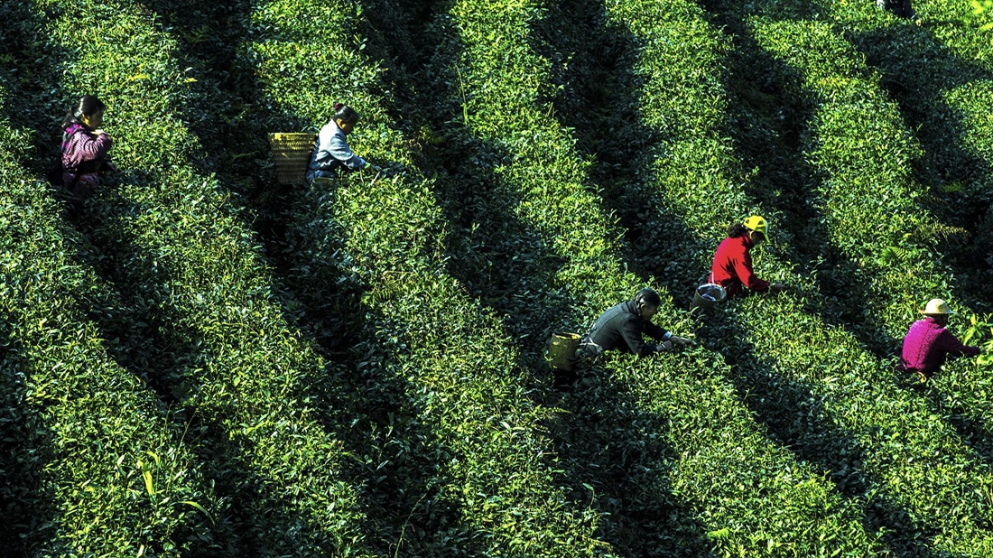 好山好水出好茶,都江堰茶叶长于深山,在向峨、在青城山、灵岩山上,春风吹拂,一行行、一垄垄的茶树就争先恐后地向春天报到。