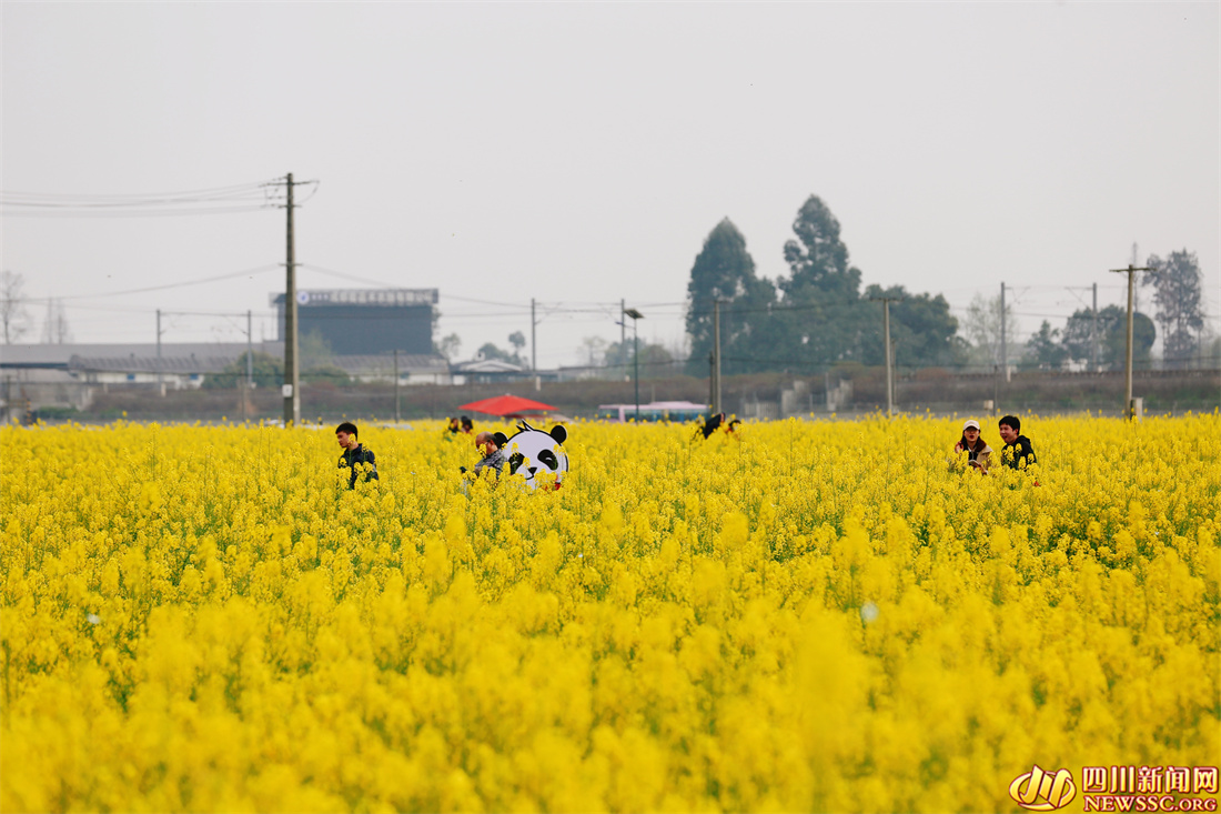 在成都崇州五星村的油菜花田,游客们赏花、拍照、喝茶聊天,甚至在花田里吃火锅。记者从五星村村委会了解到,3月以来,五星村日均游客量突破万人。