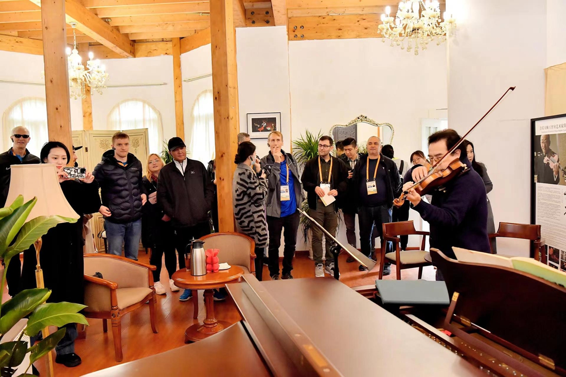 在白鹿领报修院,讲解员向代表团介绍了领报修院的“前世今生”,百年前这里中外人民友好相处的和谐景象一一再现。代表团了解了其发展历程及建筑特色,沉浸式感受领报修院厚重的历史底蕴和古典音乐的融合。