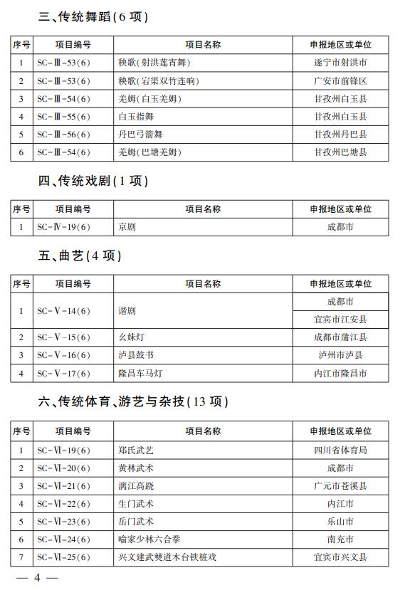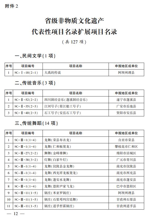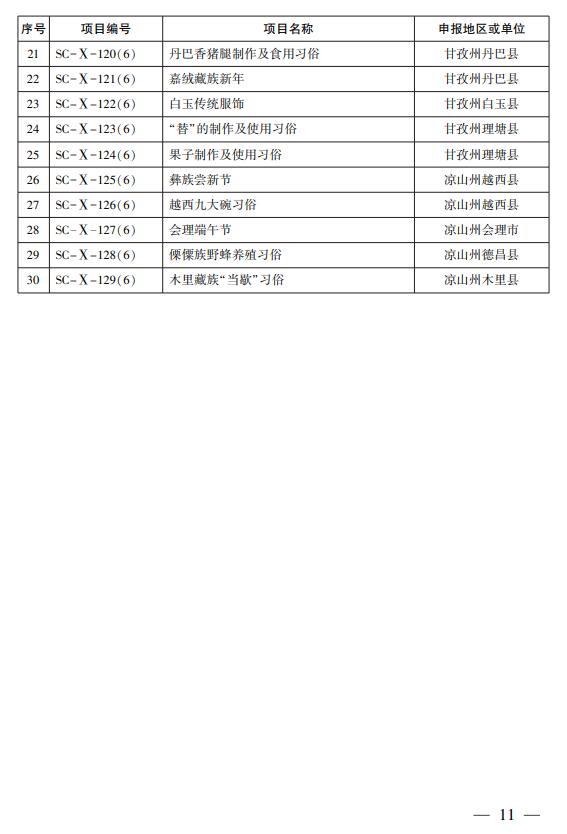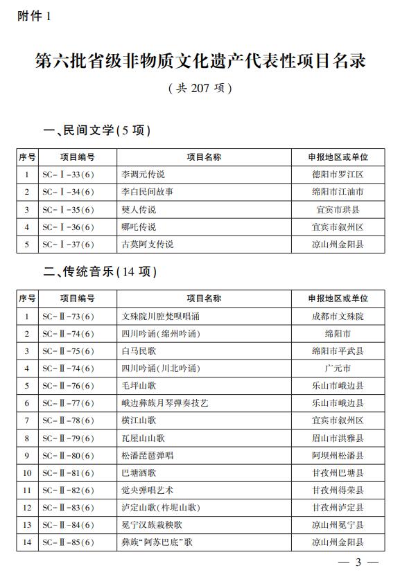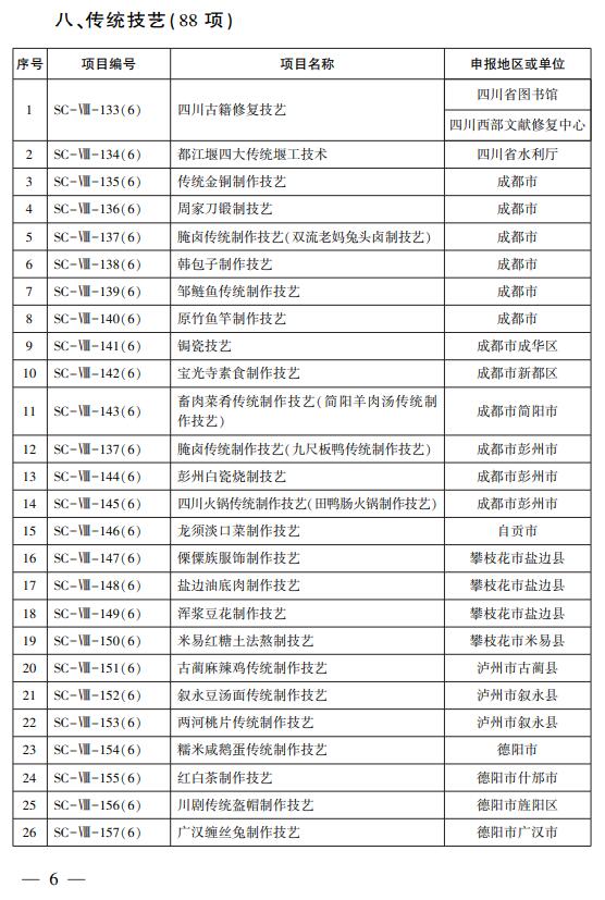 四川新闻网-首屏新闻成都4月11日讯 近日,四川省人民政府印发了关于公布第六批省级非物质文化遗产代表性项目名录的通知。详情如下: