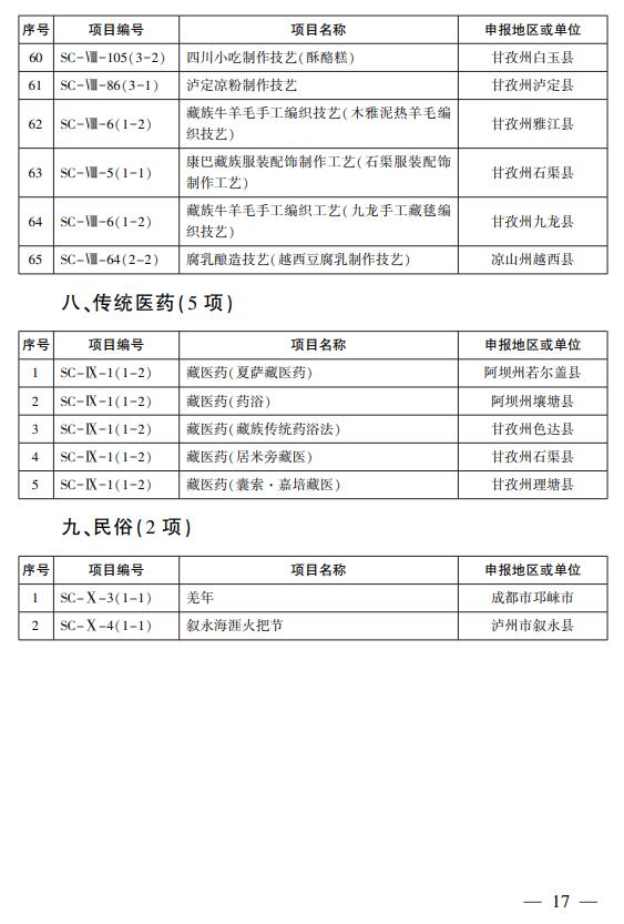 四川公布第六批省级非物质文化遗产代表性项目名录