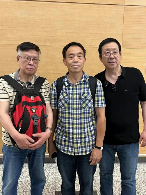 刘德文(中)与唐清宁、唐清泽兄弟合影
