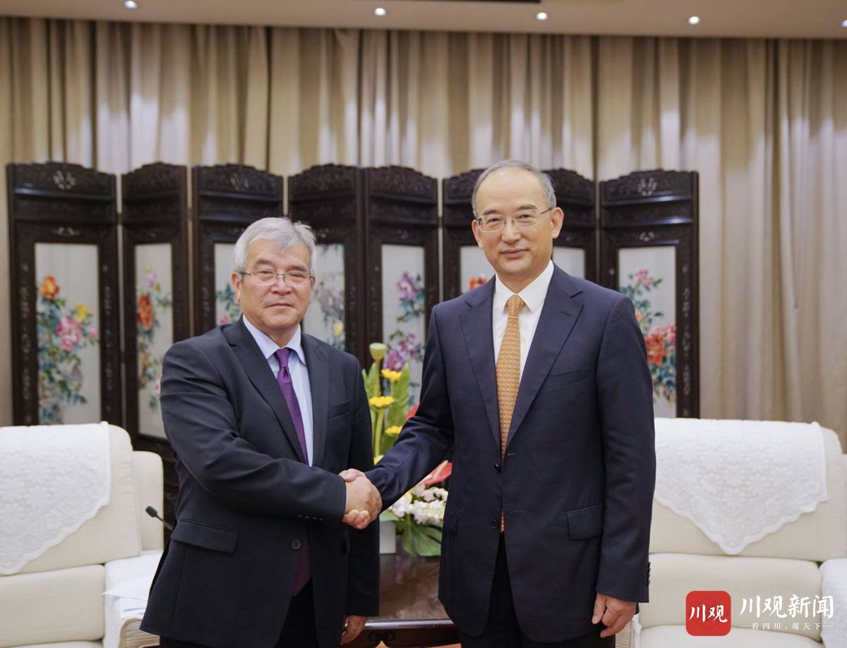 卡斯马穆别托夫对西博会的成功开幕表示祝贺。他说,希望尽快在川设立代表处,全面深化经贸、科技、文化、教育、邮政、航空客货运等领域合作,期待深度参与四川各类重大展会并在西博会中发挥更积极作用,取得更丰硕交流合作成果。