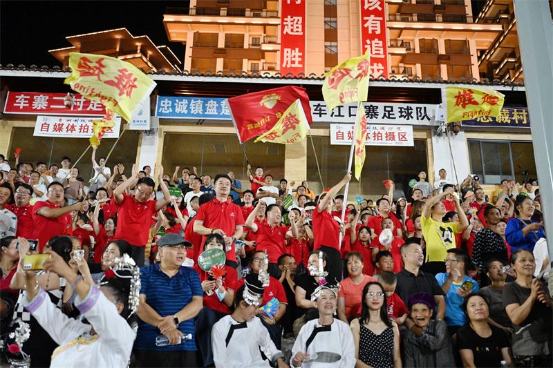 四川新闻网-首屏新闻贵州9月17日讯(记者 余开洋)“开江雄起!开江雄起……”9月16日晚,一声声“雄起”声响彻在贵州榕江村超足球场。当天晚上18时30分,贵州榕江“村超”全国美食足球友谊赛(第一季)“超级星期六”A类比赛继续进行,来自四川的“蓉城开江老火锅队”对战“贵州西秀酸汤队”。