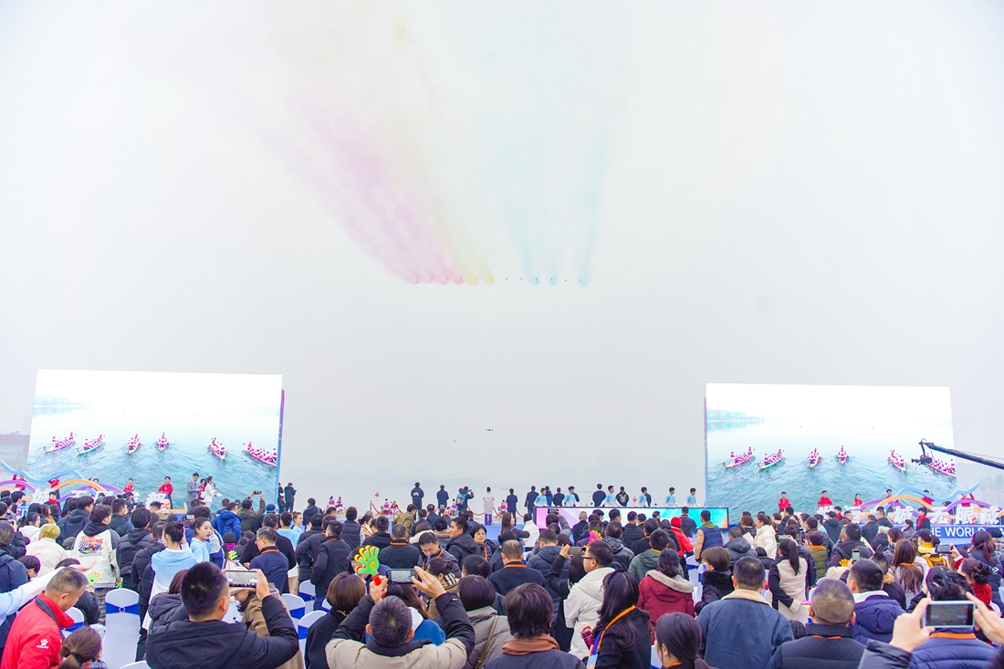 无人机拖动彩烟掠过长空、数艘龙舟齐发、炫酷轮滑、动感霹雳舞、腰旗橄榄球展示……这是记者在“世运之城 无限成都”2025年第12届世界运动会全球推广暨“万人千场”全民体验活动启动仪式上,看到的热闹场景。
