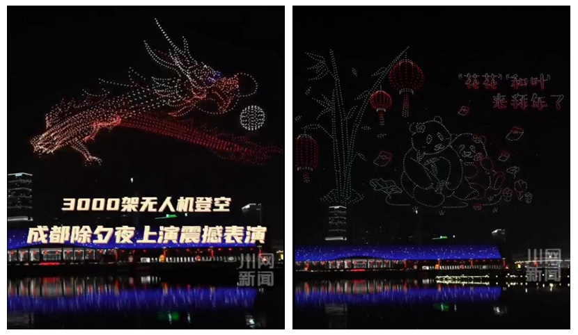 “飞龙在天”震撼夜空!3000架无人机点亮成都除夕夜