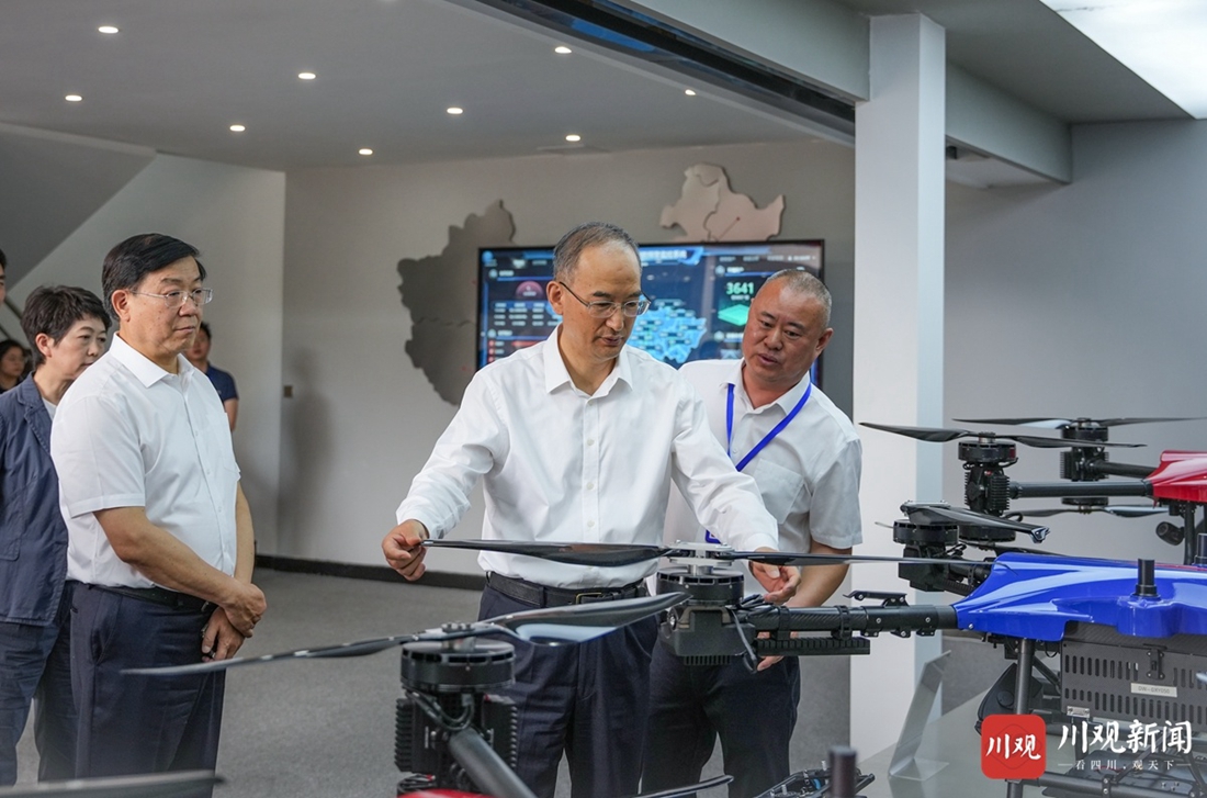 黄强在迪威弗智能装备集团了解高层灭火无人机等新型智能化应急救援设备更新和推广应用情况。