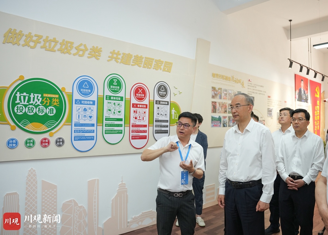 5月14日,省委副书记、省长黄强在金堂县四川长虹格润环保科技公司拆解处置车间,察看废旧电器、锂电池等再利用情况。