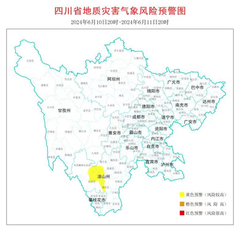 四川新闻网-首屏新闻成都6月10日讯(记者 夏婉琳)6月10日,记者从四川省自然资源厅获悉,四川省地质灾害指挥部办公室发布全省地质灾害气象风险预警。