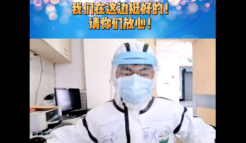 舍小家为大家!他们坚信能打赢这场疫情防控阻击战,对于需要帮助的人们,他们说,希望我们的奋战,为你们换来平安!我们一定可以胜利!对于远在家乡的亲人,他们说,别担心,我们在这边挺好的!请你们放心!