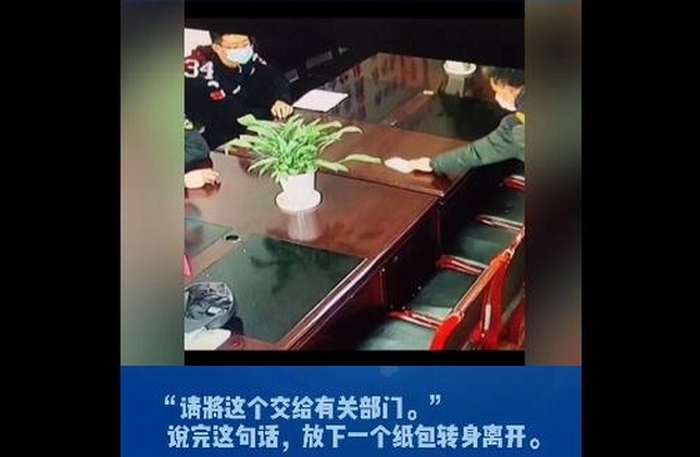 2月11日下午,一位大约50多岁,身穿灰黑色上衣,戴着口罩的男子匆匆走进渠县公安局特巡警大队门岗。他放下一个纸包,“请将这个交给有关部门。”说完这句话便转身离开。 |