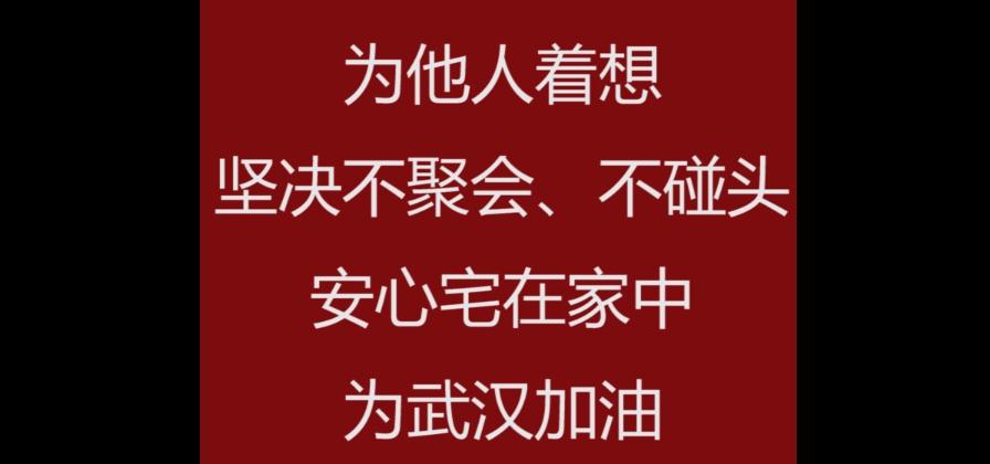 新春佳节大家难免都想要愉快的玩耍,但是疫情面前,希望大家保持冷静极力克制,不出门、不聚会、不搓麻,让亲人省心朋友放心,共同在家为武汉加油,为中国加油! |