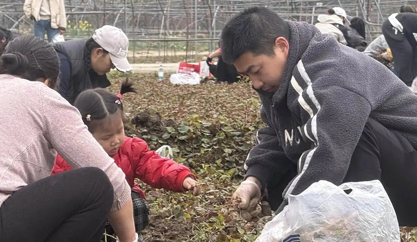 “春天的折耳根,1.5元一两!比昨天又便宜了点。”3月6日,成都市青羊区贝森农贸市场里,商贩的吆喝声此起彼伏,引得不少折耳根爱好者驻足挑选。随手拿起一把,清新又浓郁的鱼腥草香气便扑面而来。在30公里外的新都区新都街道蓉城草耕家庭农场,又是另一番热闹景象。