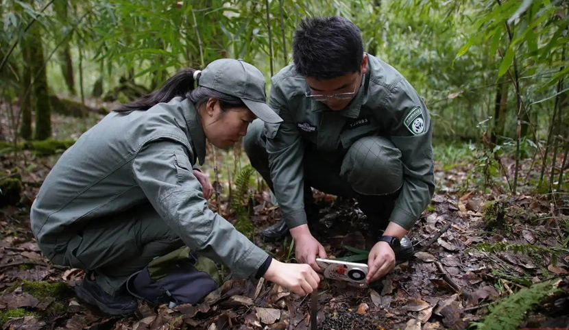“你看这个,像不像炒回锅肉的豆豉?”3月10日,记者跟随大熊猫国家公园荥经县管护总站工作人员一同进山,参与野生动物粪便采集工作。在林间发现毛冠鹿粪便后,工作人员刘志豪用自制的竹子“筷子”将其夹起展示,随后装入随身携带的试剂盒中。