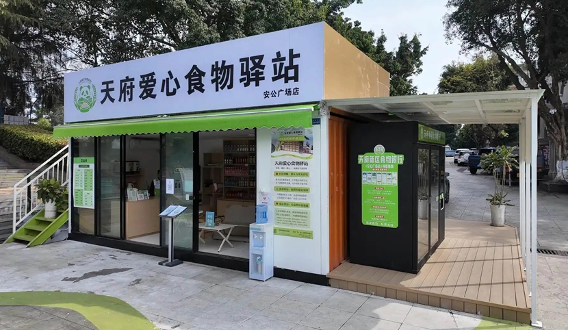 下午五点,四川天府新区华阳街道安公广场一角,一个外观简洁的智能柜前排起了小队。社区居民们熟练地打开手机,对着柜机屏幕扫码,随着“滴”的一声,柜门弹开,里面整齐码放的面包、牛奶、蔬菜等被依次取走。这不是普通的自助售货机,而是四川天府新区近日投用的首台“食物银行”智能货柜。